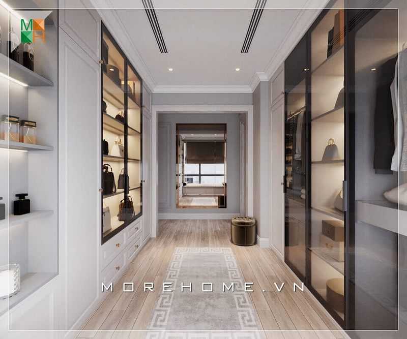 Thiết kế nội thất phòng thay đồ rất hiện đại và sang trọng phù hợp cho các nhà chung cư, nhà phố, biệt thự.