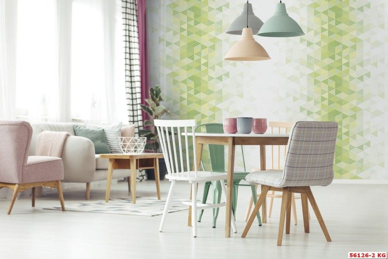 Giấy dán tường mã 88263-3 với họa tiết kẻ sọc giúp nổi bật thêm không gian