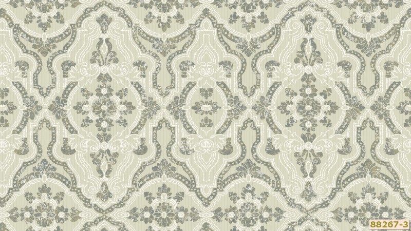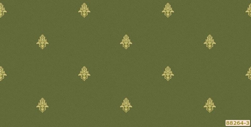 8826-4 là mẫu giấy dán tường có nền màu xanh lá cây với họa tiết màu vàng đồng mang đậm phong cách châu Âu sang trọng