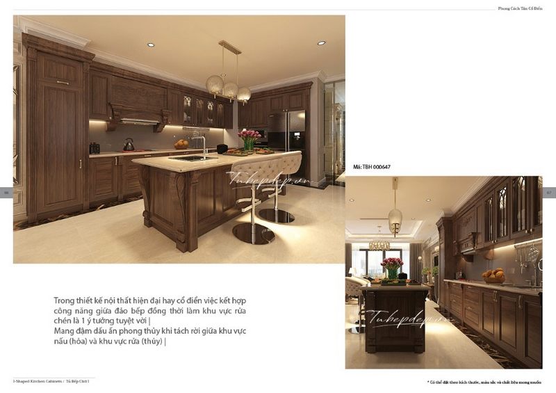Khu vực bếp nấu và bồn rửa được bố trí riêng biệt tại đảo bếp, giúp cho việc sử dụng tiện lợi và còn mang lại yếu tố phong thủy tốt cho gia chủ.